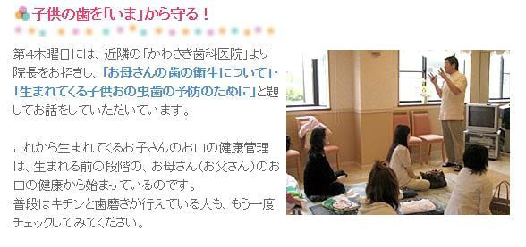 近隣にある産婦人科『レディースクリニックICHIRO』にて月に一度、院長が「マタニティースクール」の講師を行っています。大切なお子さんのお口の健康、それを支えるお母さん(お父さん)のお口の健康がいかに重要であるかを、院長が分かりやすく解説します。